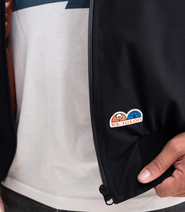 Tejido del cuerpo elástico y con doble membrana, resistente al viento, repelente al agua y con resistencia extra a la abrasión solar.