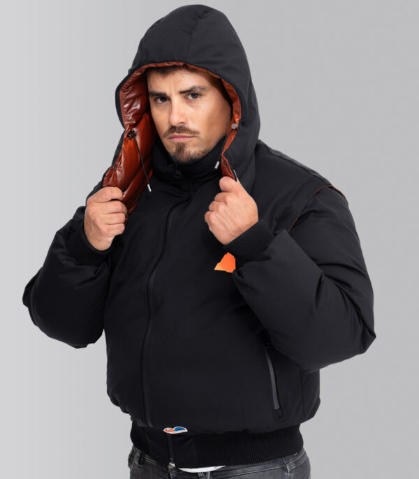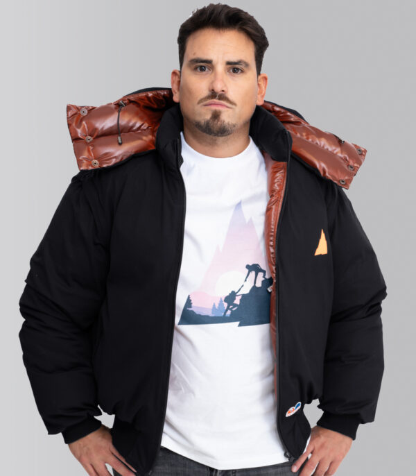 Nuevo patrón sin celdas en el exterior y con el logo de la montaña Pedro Gómez en DTF en la part frontal. Cuenta con relleno extra de pluma y bolsillos laterales. Con corchetes en la parte posterior para poder añadirle una capucha de plumas extraíble (incluida en el precio) y con cremalleras en las mangas para poder extraerlas y convertir el modelo en chaleco.