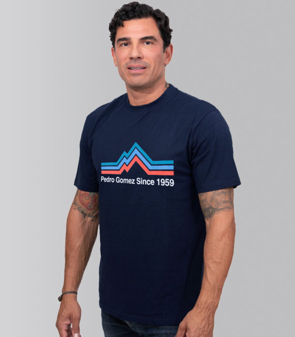La camiseta Retro Maritime Blue forma parte de la colección exclusiva de camisetas Pedro Gómez Madrid.