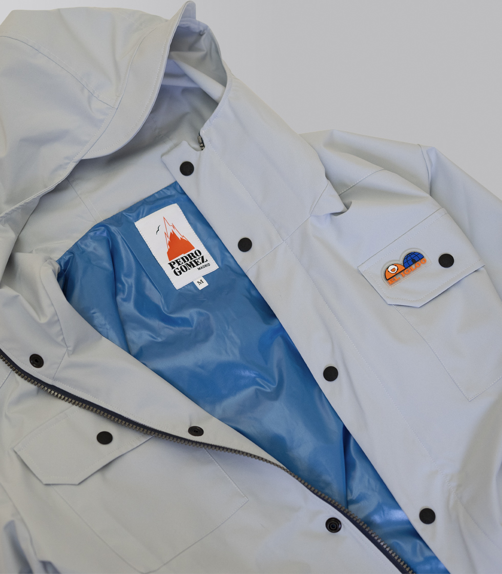 Cuenta con etiqueta engomada de El Igloo en el bolsillo superior izquierdo y varios bolsillos con diseño actualizado y apertura de corchete personalizado. Así mismo, dispone de cremallera central con diente plateado con logo Pedro Gómez y visera con capucha.