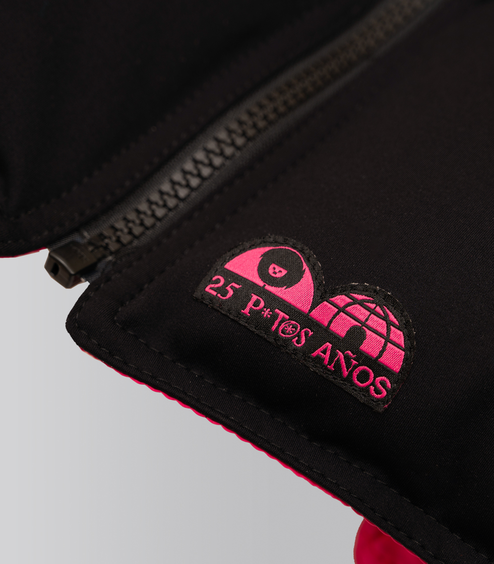 Cuenta con diseño especial con la firma de Dani Martín para el forro interior y con 3 parches exclusivos intercambiables con velcro en la parte frontal, etiqueta El Igloo especial «25 P*tos años» y etiqueta interior exclusiva de la colaboración.