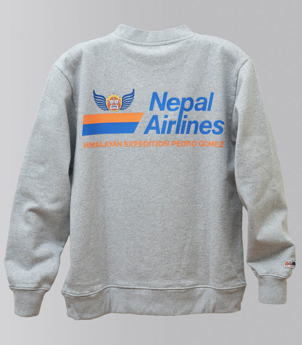 La sudadera Nepal Airline Grey forma parte de la colección exclusiva de sudaderas de Pedro Gómez Madrid.