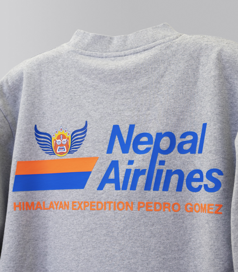 Cuenta con el diseño original de Nepal Airline Pedro Gómez en la parte delantera y trasera.