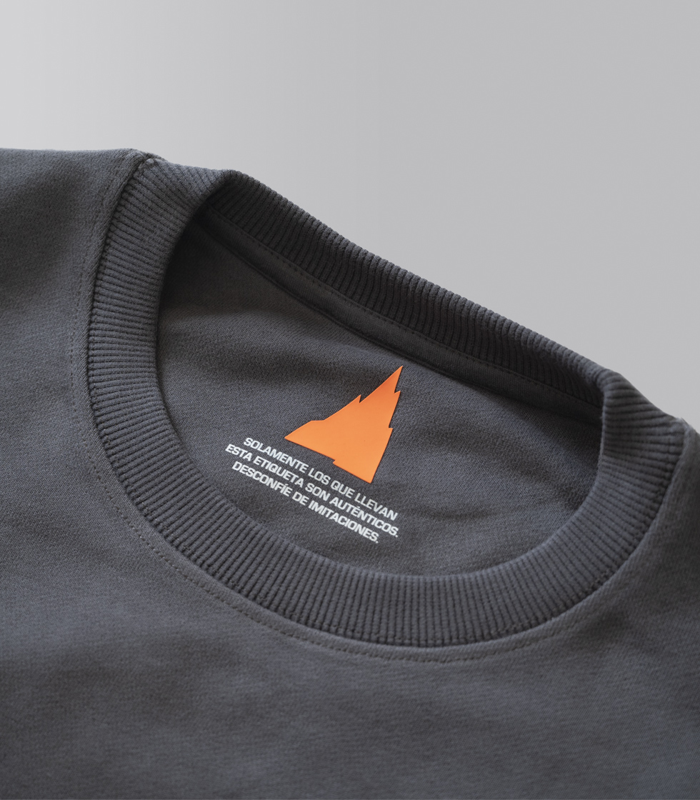 Cuenta con el diseño original de la montaña de Pedro Gómez Madrid en  la parte frontal con colores naranja, blanco y negro.
